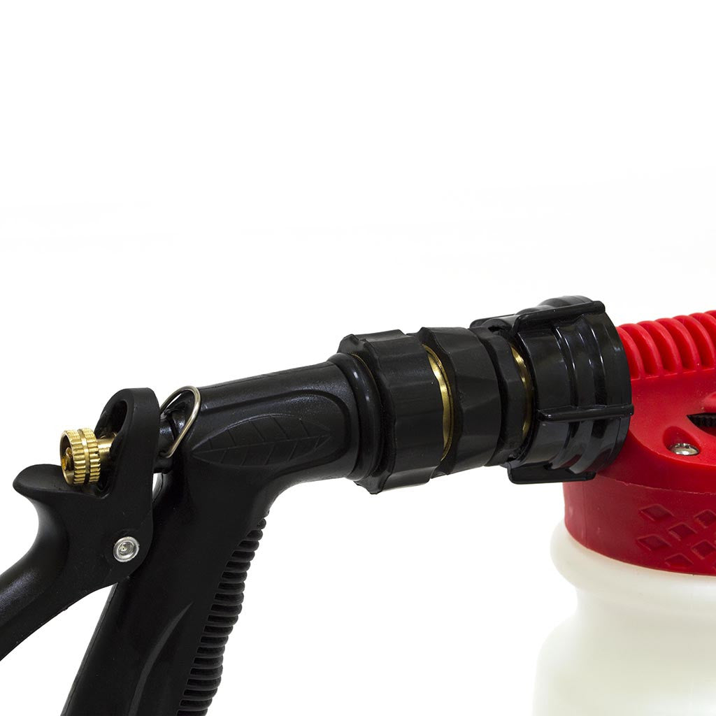 The Low Pressure Dip Foamer is a low pressure sprayer compatible with standard garden hoses. DOES NOT require a pressure washer. Just add Dip Wash® to the Dip Foamer and spray away. The Low Pressure Dip Foamer will cover your vehicle with a fluffy foam that removes dirt, grease, oil, and debris. Wipe completely with a Dip Washer® and then rinse with water.
